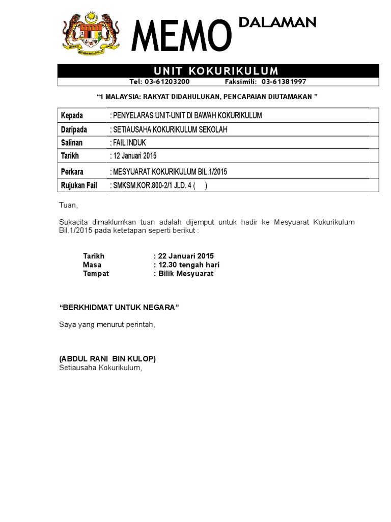 5+ contoh surat memo menarik.
